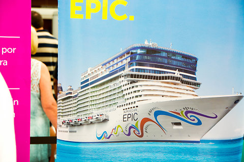 When we got in line to check in we were excited to see this poster of the ship. It's the first time we were staying in a room you could see on the poster!