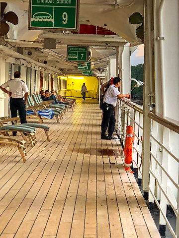 Crew members   When we were leaving Cienfuegos the captain said it was a tricky exit. I think we had to go through a narrow canal. As we were standing on the deck, watching, several crew members came out to see how the Cuban pilot was getting us out of there.
