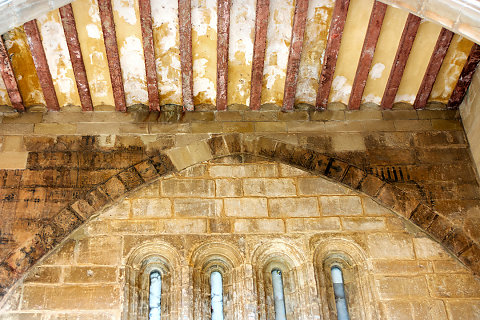 We gathered just inside the door. The tour was in English and Spanish. You can see the crosses on the arch. There are other beautiful designs that are easier to see if you click on the image to make it larger.