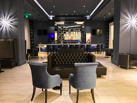 Lobby bar   The wall lamps and the back mirror, so cool!