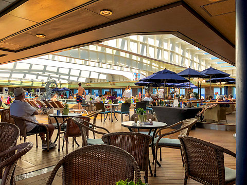 We had lunch by the pool. It was a very windy day You can kinda see the roof over the pool is nearly closed. I guess they thought the breeze would be too cold for the swimmers.