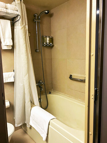 We were impressed there was a full tub in the bathroom vs. the tiny shower capsule that are in most cruise bathrooms.