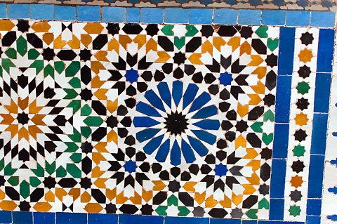 Zellige   This type of tile is called zellige. It's tile chips set in to plaster. Craftsmen are trained from childhood in this artform.