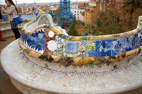 Terrace seating   The shape of the roof bench allows people to have private conversations, even when the benches are full of people. The bumps on the bench were put there by Gaudi to allow the benches to dry quickly after it rains.