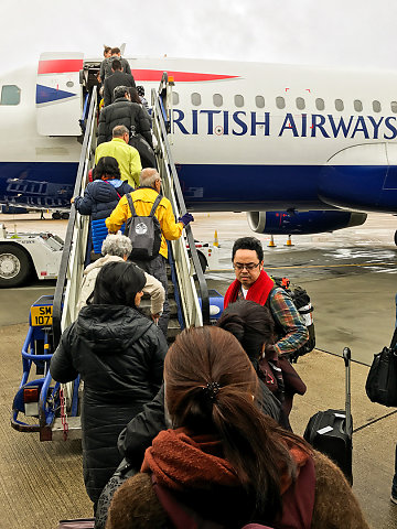Off to Helsinki!   For some reason we didn't take pictures when we left home. After switching terminals at Heathrow, which took a long time, we're boarding the plane to Helsinki!