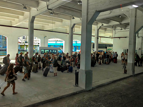 Travelers   I was just amazed at all the people with suitcases. They must have come off of the other cruise ship. I was expecting more people taking tours, not people with suitcases.