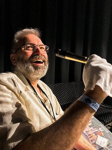 Having fun!   Everyone else just held the microphone. Bill was the only one that had some fun with it.