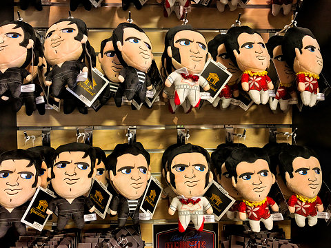 Rack of Elvises   We thought this rack of collectable stuff Elvises were hilarious. I'm not sure I would like just one of them away from the group. All of them looked really pissed too!