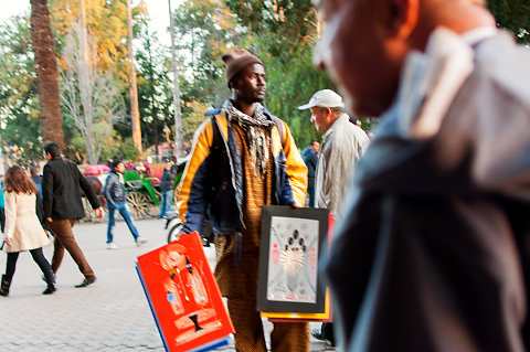 Sales   The problem with standing still to wait for the bus is, anyone who was selling anything came by: art, people tried to put necklaces and scarves on us, belts, they had counterfeit iPhones, they were delling anything you could think of and they tried to get it in your hand or around your neck.