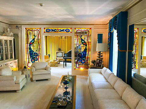 Living room   They told us that during the holidays everything in these rooms would change. They woud take out the sofas and take down the curtains and replace them with red versions.