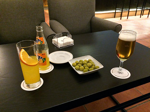 Dinner!   While we decide what to eat I had a Fanta, Bill had a beer and we had some yummy olives!