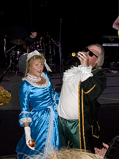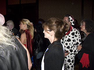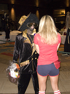 ![]() The Pimp won for most humorous costume. Talking to Roller Girl. |