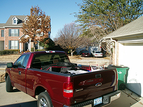 The car company messed up and, instead of getting a cargo van, they had to scramble to get us a truck. We got it late Friday night so we packed it up in the morning. |