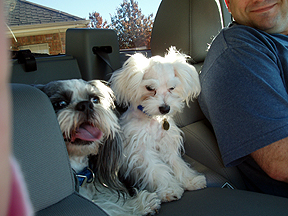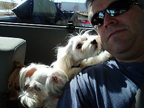 It was Spike's first ride in a car without being in his crate. He spent a lot of time trying to kiss us. |