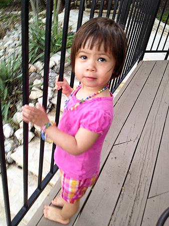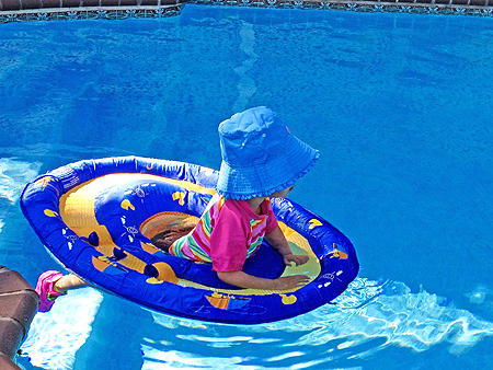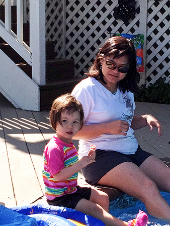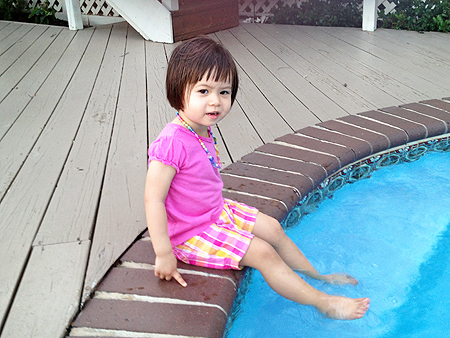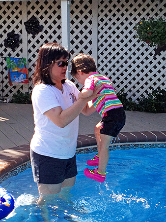 By the time we arrived everyone was already eating lunch so when lunch was done, we went in the back and Sophia wanted to get in to the pool. |