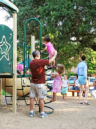 For dinner we went to Waterloo. We ate and had drinks next to the playground. |