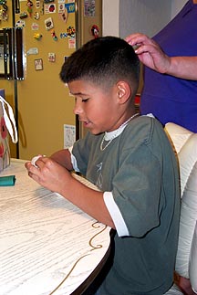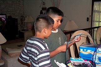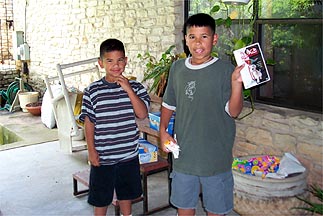 Gary and Tomas look through their baskets left by the Easter Bunny. |