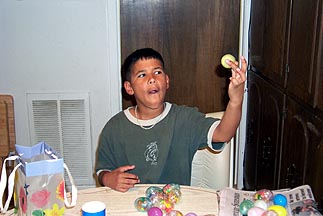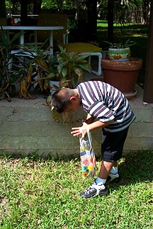 Now on to the Easter Egg Hunt!!! Gary finds an egg! |