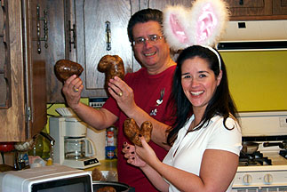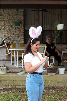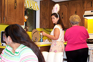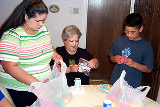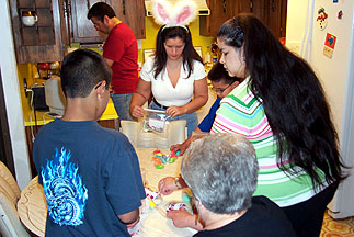 On Saturday, the big event was dyeing eggs. We had glow-in-the-dark egg paints. |