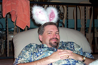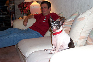 I really like this picture. First, Dad in jeans which is unusual and then a picture of Daisy with her tongue out. As she gets older and older, her tongue sticks out farther and farther. |