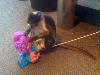 ![]() Believe it or not, the monkey was on our flight again! He was very well behaved both ways, not a peep out of him. He was having fun playing with his stuffed toy. |