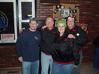 Here we are with Randy, the owner of the Booz In. He gave us windbreakers! |