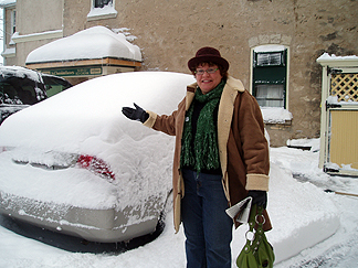 ![]() The snow started to slow down around 6. As you can see, the roads weren't plowed yet. Click the photo or HERE to see the movie. |