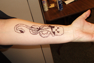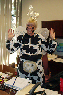Off to Kris' work. Mike Hankins as a woman! He won the ???? costume category. |