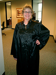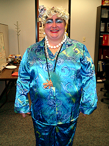 Kathy was a judge for the costume contest and dressed accordingly. |