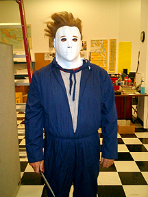 Halloween morning. I went to work as Trinity from The Matrix. |