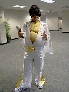 ![]() Chris was hilarious as fat Elvis! He won first prize for best male costume. |