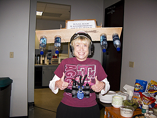 ![]() Kris' Halloween first. The sign above Lynn's head says, "Texas Aggie Waterboarding Torture Design." |
