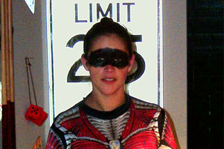 I left work early, sped home and changed in to my nighttime costume. I had to black out my eyes so they couldn't see them behind the mask. |