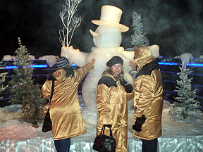 Ellen and Kris touching the snowman. |