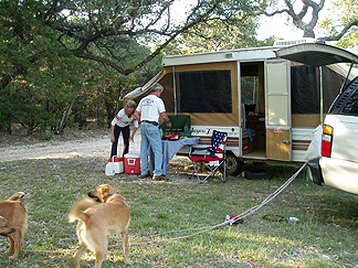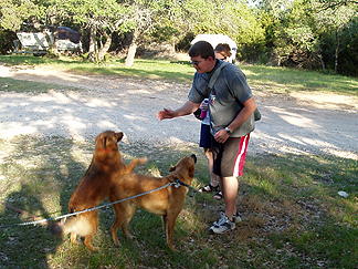 Dustin and Beth saying hello to Turk and Buddy, Michael's dogs. |
