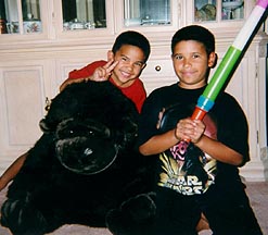 The boys with the get well present Bill and I sent. Tomas named him "Mini Me".