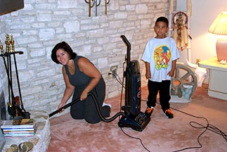 Mom & dad bought a new TV so Kris and Tomas are getting the space ready. |