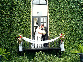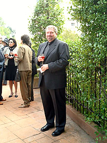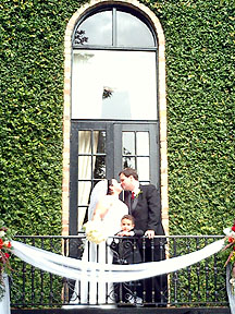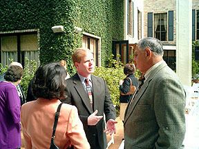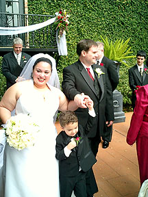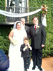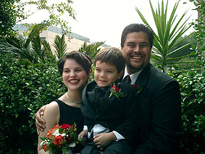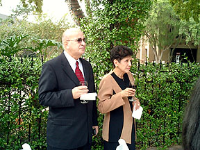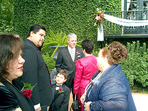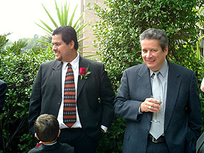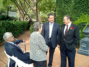 Grandma and Grandpa Perez talking to Dad and Uncle Bob, the Father of the Bride. |