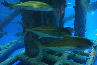The fish are obscuring a giant green eel that was in those pipes. There were also a few sharks. |