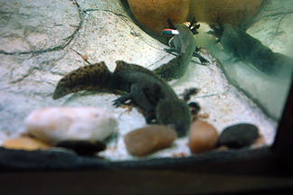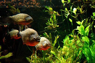A group of guys played like they were going to put their hand in the tank. The piranha were all there in a flash! |