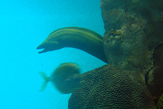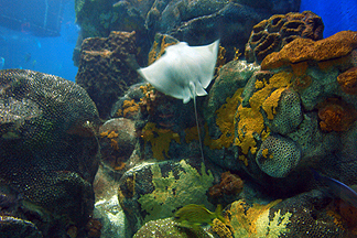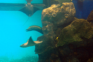 I think someone was feeding the sting ray at the top of the picture. He kept sticking his head out of the water. |