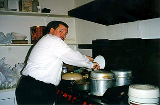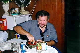 Some of the food was catered and the rest grandma cooked. Bill's heatingup the food before the guests arrived. |
