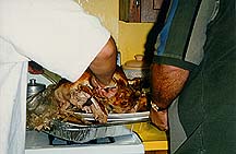 Dad and Bill try to move the already-falling-apart turkey. |