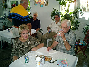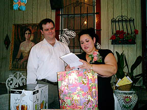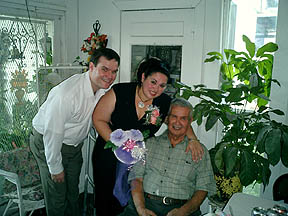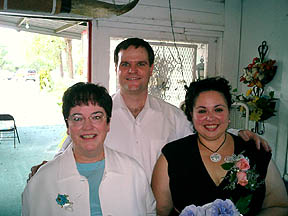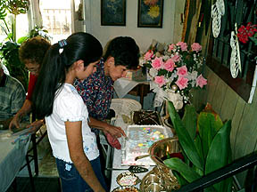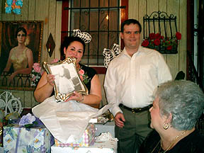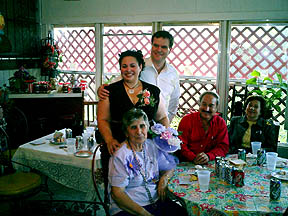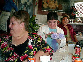 The Mother-of-the-Bride, Yoli, with the Mother-of-the Groom, Dorothy, making the bow bouquet. |