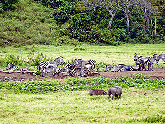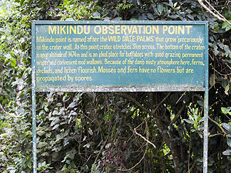 ![]() Mkindu Points is named after the Wild Date Palms that grow precariously on the crater wall. At this point, crater stretches 3km across. The bottom of the crater is an altitude of 1474m and is an ideal place for buffaloes with good grazing permanent water and convenient mud wallows. Because of the damp, mist atmosphere here, ferns, orchids and lichens flourish. Mosses and fern have no flowers but are propagated but spores. |