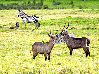 ![]() Some waterbucks were hanging out with the zebras. |