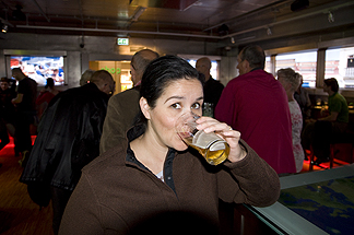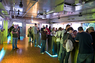 ![]() After looking at print media, on to the real bar. They gave us bracelets with 2 tokens on it. One token for one free beer. |