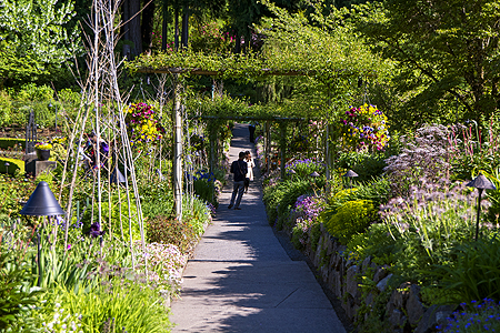 The plaque for this one said this totem pole is: Eagle with Salmon, Orca, Bear with Salmon. Carved for the 100th anniversary of the Butchart Gardens. |