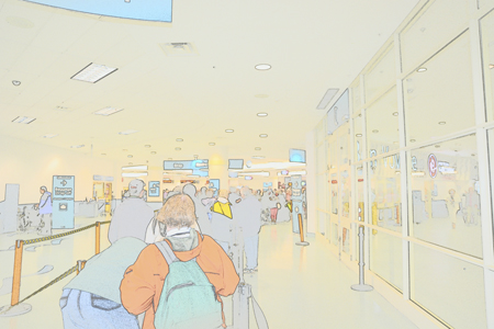 We found out this line was just security. Behind those screens was the line for customs and then another line after that to check in for the cruise. It wasn't very well managed at all. |