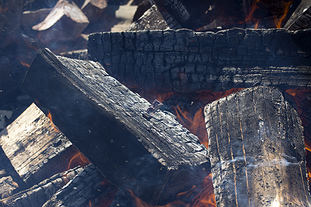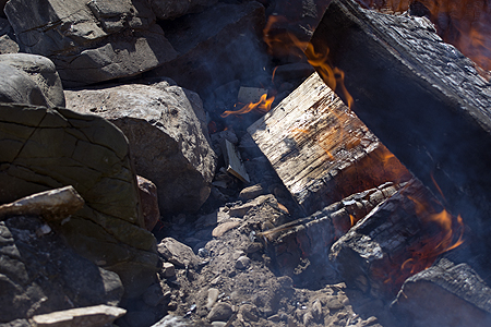 Bill's chip had some problems. The wind caught it and it blew out of the fire. It's there, to the left of the fire but where we couldn't grab it and throw it back in to the fire. |